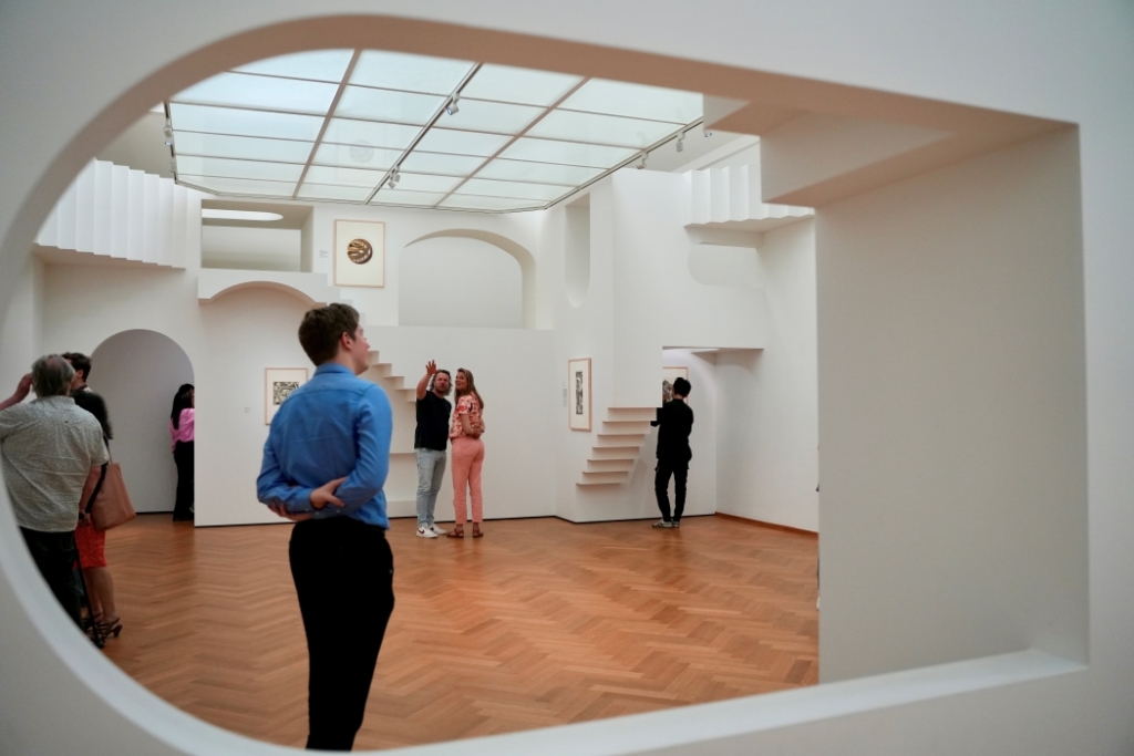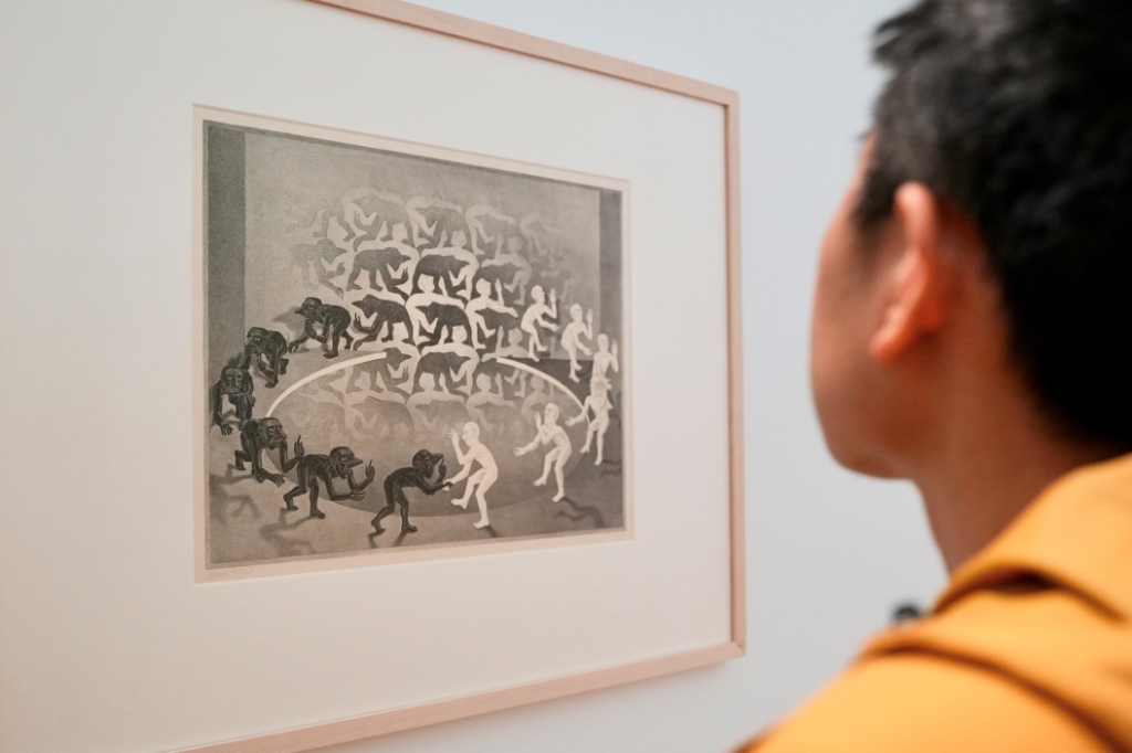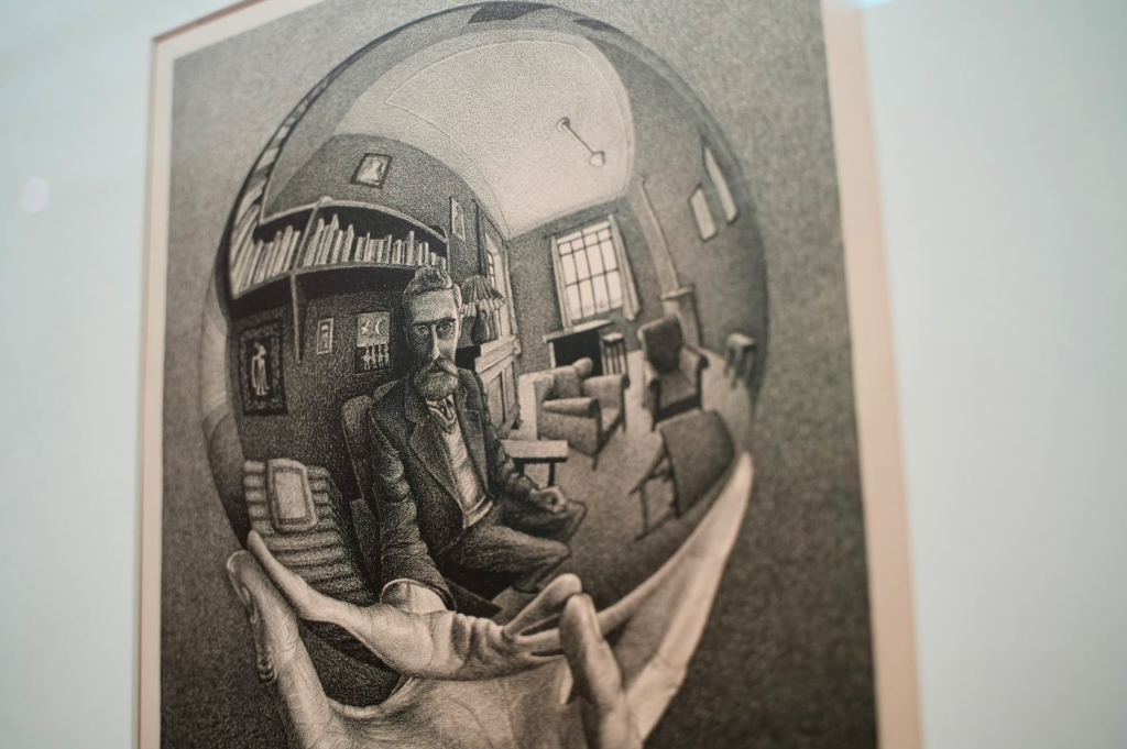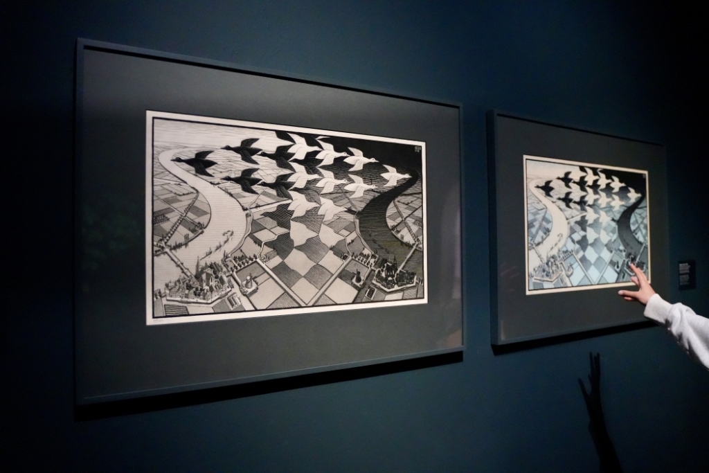 這場展覽除了完整展出艾雪各個時期的代表作,包含以「反射的鏡像」為題的〈手上的反射球體〉、〈三個球體〉,彷彿棋盤紋路的〈天與水Ⅰ〉、〈白天與黑夜〉,表現「無限性」的〈循環〉、〈天長地久不相離〉,宛如迷宮的〈上下階梯〉、〈瞭望台〉,還有許多珍貴的手稿筆記。