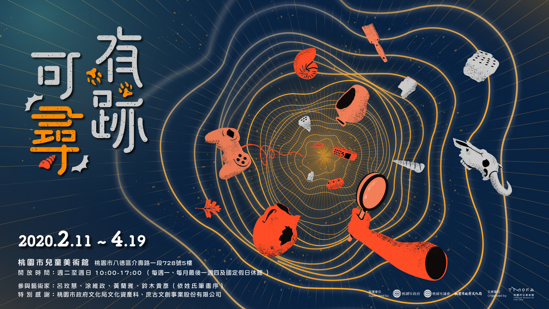 109年2月11日至4月19日,由桃園市兒童美術館舉辦的《有跡可『尋』》展覽,將兒童美術館化身為一座「尋寶」的基地。透過大型沙坑挖寶模擬、時空探索繪畫洞窟、紋飾拓印及異材質拼貼等藝術的體驗,讓小朋友發揮想像,從尋寶的樂趣中一同探究來自在地、來自遠古的訊息,將遙遠時空的遺跡場景,以想像力凝結在當下。
