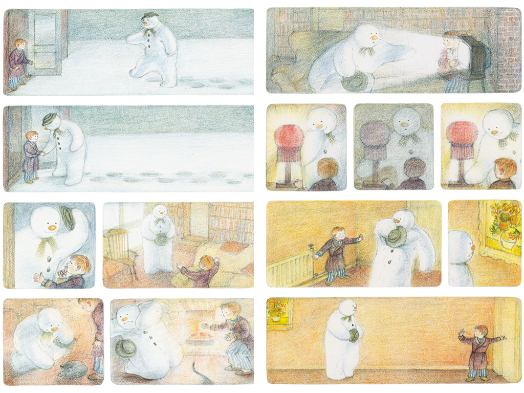 多年來,雷蒙.布力格用畫筆描繪了人類的一切――喜劇、悲劇; 熱情、溫柔、恐懼、憤怒、喜悅、妖怪……粘液。在《雪人》中,他輕柔的筆觸為這個故事帶來一種神奇、夢幻的效果。有時筆線會推進,使場景宛如正在飛行中。有時它們會震顫,就像沉睡男孩的床板,和最後在圖畫裡融化的雪人那般令人心酸。