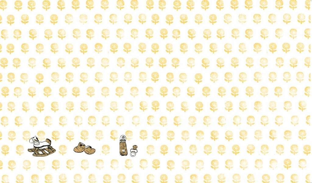 從蝴蝶頁開始,這本書就吸引我的目光。繪者所畫的物件:搖搖馬、小襪子、奶瓶奶嘴,立刻就把我拉回初為人母的時光。橙色的小花布滿了畫面,開啟整本書的基本色調,溫暖的主題曲,就此開展。