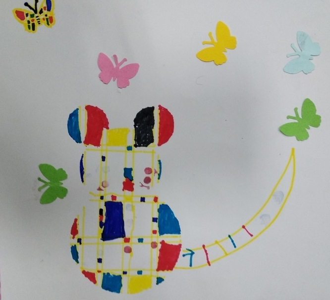 ◎蒙德里安出生於荷蘭,作品常以垂直和水平的線條,長方形和正方形的各種格子組成,並搭配三原色組成抽象畫面。因為今年是鼠年,結合了中西方的元素,設計了一隻蒙德里安鼠。
