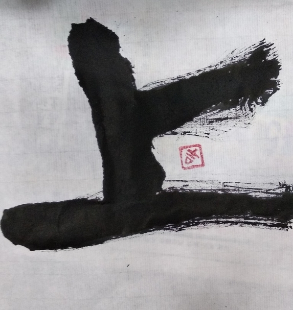因為自身極喜愛寫書法,所以總會將書法元素規劃到課程中,除了字體的練習,空間的安排也是重要的,中國的書法藝術,將墨線寫在白紙上,呈線了黑與白空間美感:若時間充足,還能將完成的作品利用浮水染的顏料進行背景的渲染,加上印章,便是一件能在家展示的好作品。