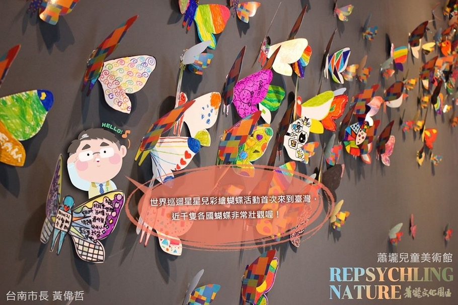 藝術家這次來台期間也特地到永福國小及佳里國小舉辦工作坊,與台南小朋友們共同創造出一隻隻獨特的蝴蝶,之後並將帶著臺灣美麗的蝴蝶繼續至世界各地巡展。(圖片來源: 蕭壠文化園區FB粉絲專頁)