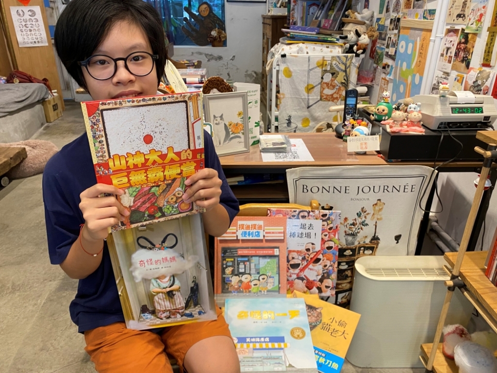 我和媽媽在討論這個主題的選書時發現,我特別喜歡日本和韓國的奇想故事,最讓我百讀不厭的應該就是韓國作者白希那的奇怪系列,她用紙黏土雕塑和攝影的手法創作,讓故事表現得既寫實又奇幻,其中我最喜歡《奇怪的媽媽》,浩浩媽媽因為工作沒法回家照顧正在發燒生病的浩浩,她打錯電話請來了一位「奇怪的媽媽」,她乘著白雲,從天而降來到浩浩的家,從「奇怪的媽媽」出場看來,她應該是一位仙女,但是和我們想像中的仙女不太一樣,有一點奇怪,但是她很溫暖的聲音讓浩浩不害怕,為了讓生病的浩浩舒服一點,她做了雞蛋湯和荷包蛋,還用蛋白和牛奶做成了一朵朵軟綿綿的白雲讓浩浩當床,媽媽下班回家了,和浩浩一起躺在牛奶蛋白雲上睡覺,「奇怪的媽媽」還做了一盤超大的蛋包飯給他們做晚餐,有很多小朋友來書店看這本時都說「奇怪的媽媽」長得好可怕,但我覺得她很可愛,而且會做這麼棒的蛋料理,是「神奇的媽媽」才對!