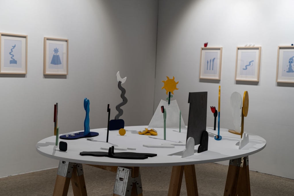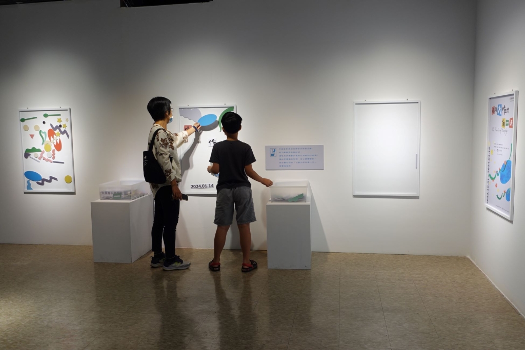 藝術家徐世賢在開幕導覽提到,先前在大展身手做展覽的兒童工作坊帶領小朋友實際操作,發現小朋友對形狀的想像,需要增加一些擬人化角色,會更加了解不同情境下的狀態。