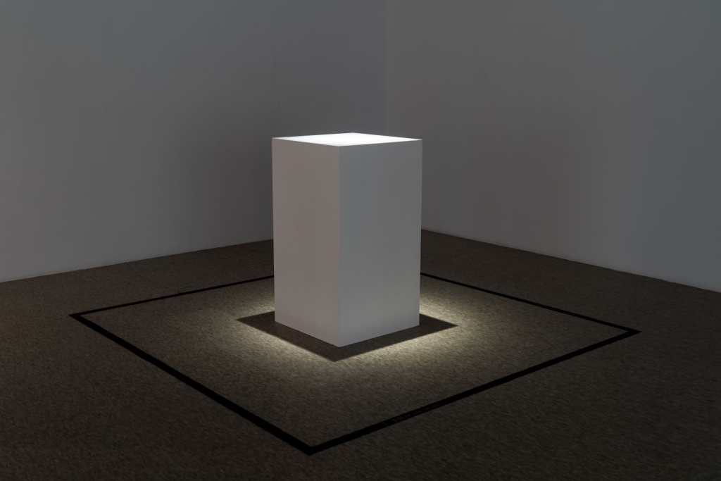 一走進展場,看到一個臺座又被打燈,是不是就會想往前一探究竟呢?策展人提到,慣性看展的行為,會將腳下用竹炭粉圍起的黑線輕易踩到,黑色粉末也會隨著觀眾的鞋子移動到展覽各處,隔一段時間來觀察,彷彿可以知道有多少觀眾不經意的就「跨越」了看展時心中的隱形圍籬!