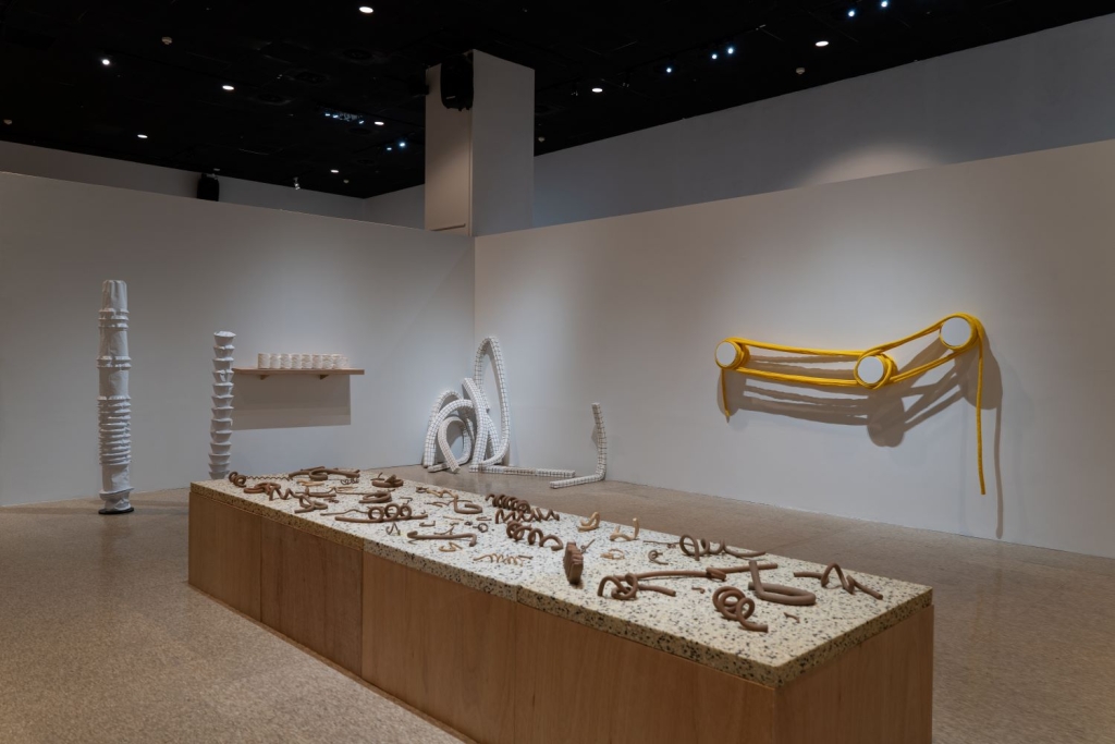 應該是大理石冰涼觸感,但居然是軟軟綿綿的?看起來是常見的塑膠水管,但居然是布料做的?藝術家用材質去翻轉對物品的刻板印象。所謂藝術,不是要讓人看不懂,而是透過不同藝術表現,讓觀看的人去主動思考到底藝術是什麼呢?