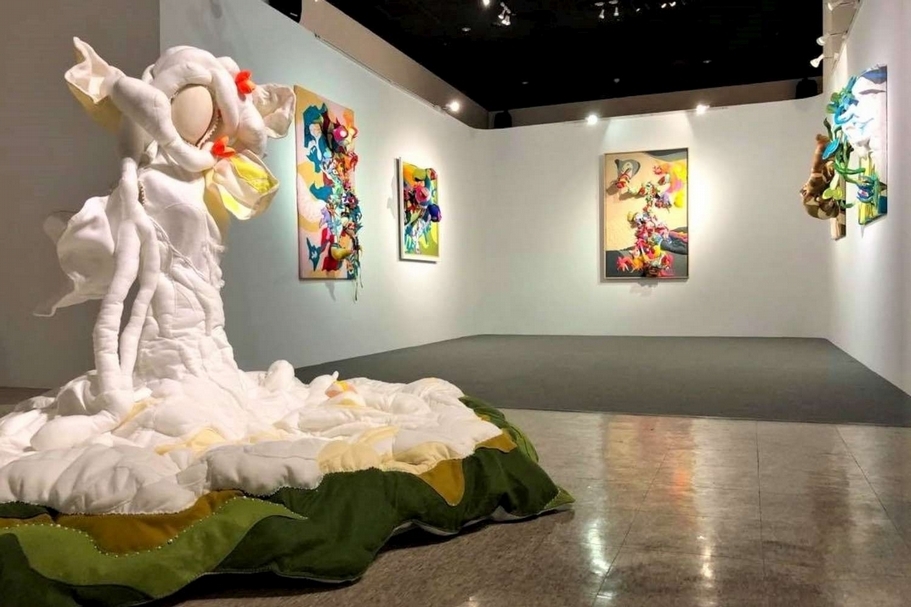 黃蘭雅則用熱熔膠創作,作品造型受自然界的微型結構啟發,有對保育的呼喚,也是探問真我的儀式;為人母的曾麗娟,以色彩鮮豔的軟質布料當色料,縫製出立體造型獨到的布偶,像抽象畫,她也藉縫紉的節奏與呼吸,重整內心的平衡,讓自己與生活交好。