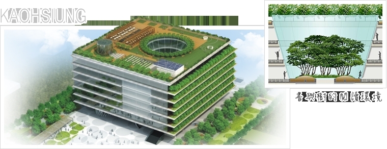 建築手法採用懸吊式的鋼棒,是輕量化的設計,並採玻璃帷幕,是全世界穿透性最高的圖書館,也實際利用雨水回收、更有效率的地板空調、自然綠蔭遮陽有效節約能源與水資源,減少碳排放。建築體設計概念就像是棵大樹!三至八樓有草皮綠地景觀陽台,可讓民眾躺在草皮、綠樹下看書;天井中設計懸吊的空中森林,把六、七、八樓閱覽空間包覆在樹海的視野。頂樓又是一個超大空中花園,是名符其實館中有樹,樹中有館的綠建築!