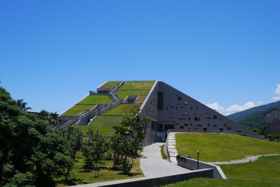 建造成埃及金字塔造型的台東大學圖書資訊館,是清水造型模地景式綠建築,獲得「鑽石級」綠建築標章及被國際知名建築師網站評選為世界8大特色圖書館第一名,並在2019年獲得全球卓越建設獎首獎,得到世界級的肯定。週邊被林地環繞,鋪設大片草皮鋪設在館外,與自然融合,館內則大量採用自然光,節約省電。