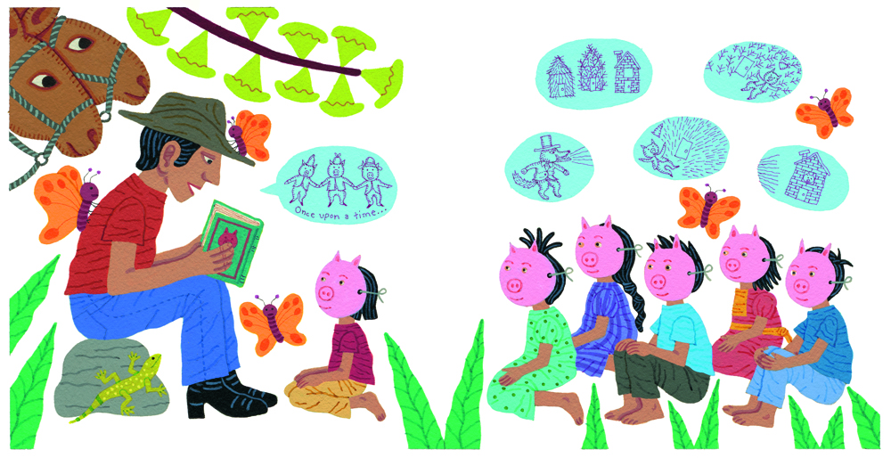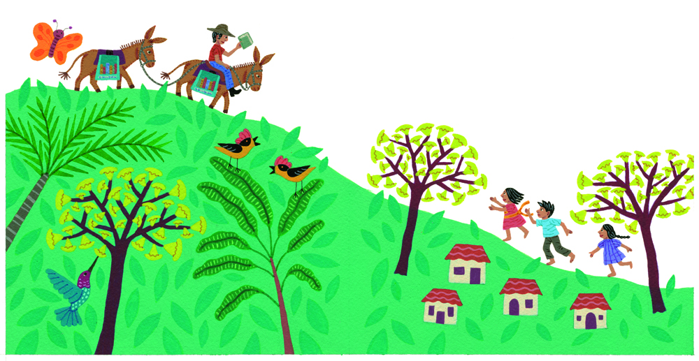 《驢子圖書館》取自發生在哥倫比亞的真實故事:小學老師每個週末趕著背滿書的驢子,在戰火頻仍的加勒比海沿岸翻山越嶺,送書到與世隔絕的村莊,並為孩童朗讀書籍內容,造福偏遠地區無書可讀的居民。