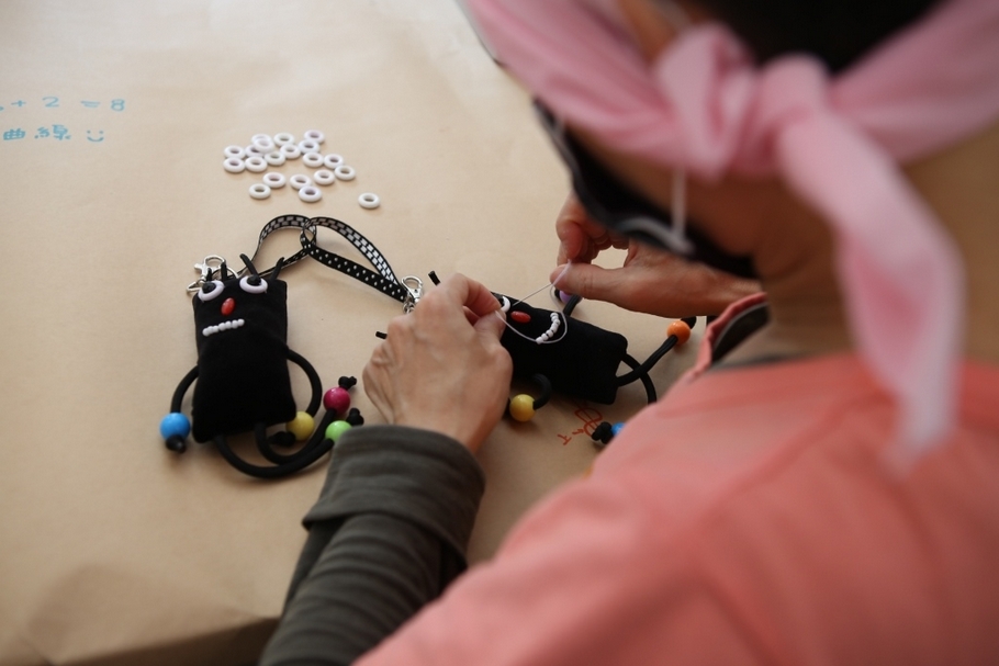 大家專心細心製作吉祥物黑嚕嚕手工吊飾