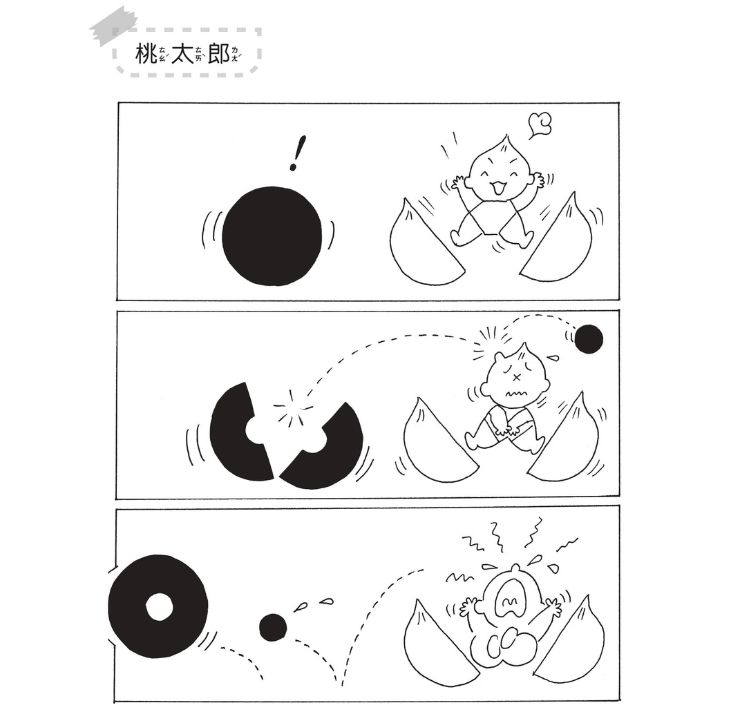 如果在圖中加入一條水平線,看起來好像是小黑在水平線上滾動;如果改成加入一條對角線呢?哇!從左邊看過來,小黑好像滾下山去,可是若是從右邊看過來,卻又像是小黑辛苦的爬上山,如果直線變成階梯狀呢?