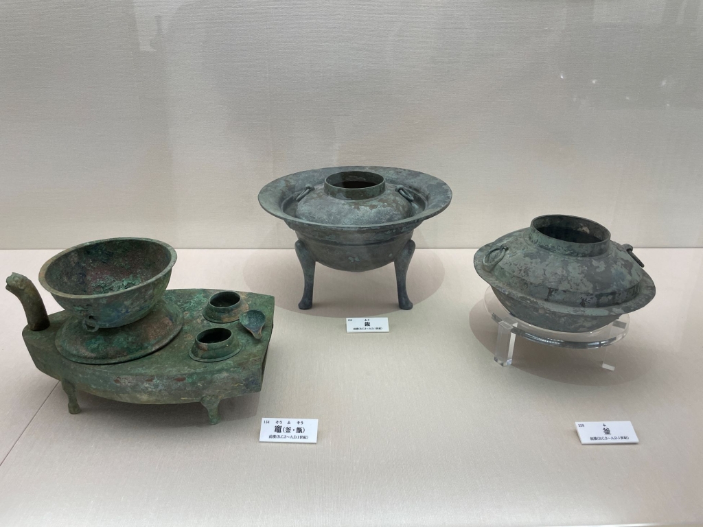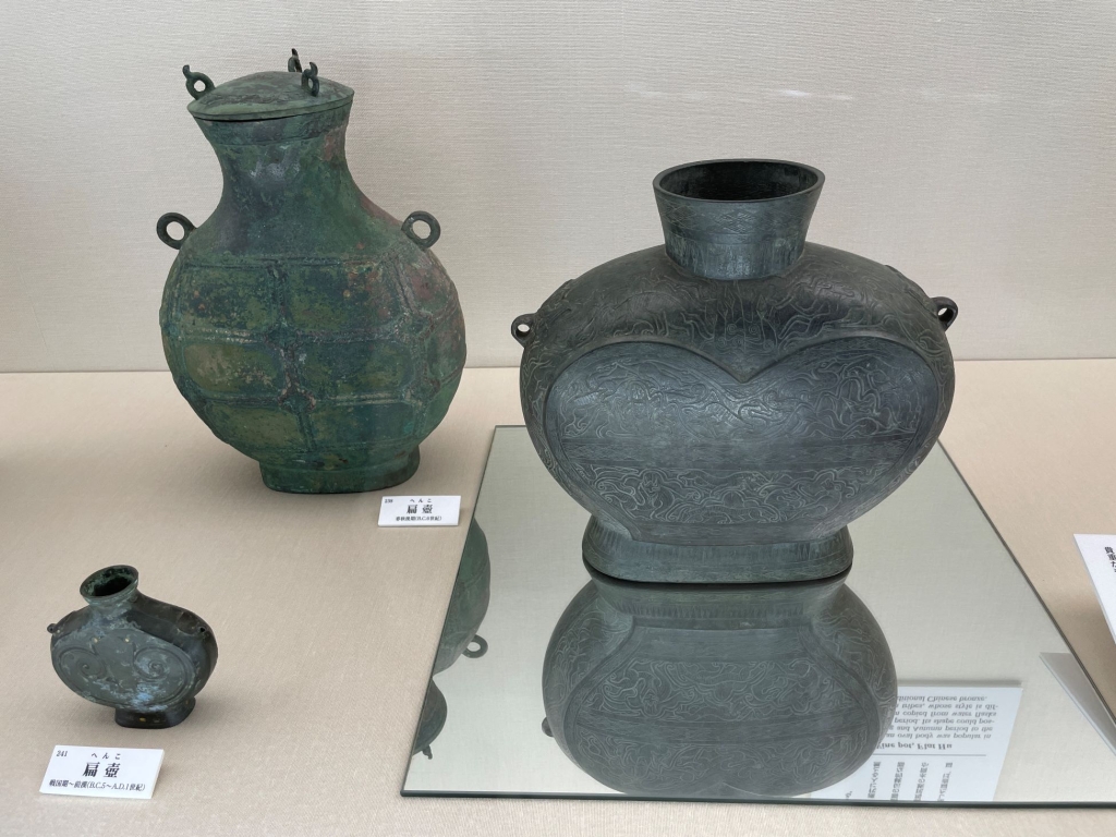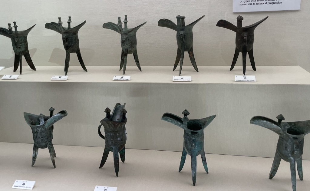 逛完佛像展區,隔壁就是青銅器館了,此區的展品是由日本著名的收藏家坂本五郎先生所贈,總計約380件,包含中國殷商時期到漢代,橫跨將近1400年!你可以看到各有不同樣態的青銅器,像是這區的爵,就有好多種風貌呢!或是不同的扁壺、烹煮食物的器具,是不是很有意思?對古早時期的生活更充滿想像了呢?