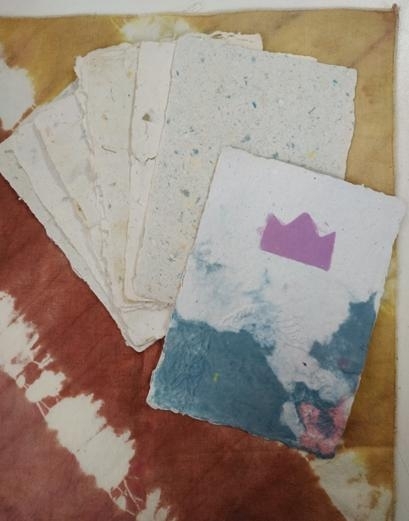4 滴乾抄紙網多餘水分,或用布稍稍吸乾,再倒扣在事先備妥的紙板上,並用熨斗燙平。做好的手抄紙可以再製成明信片或小書,獨一無二。