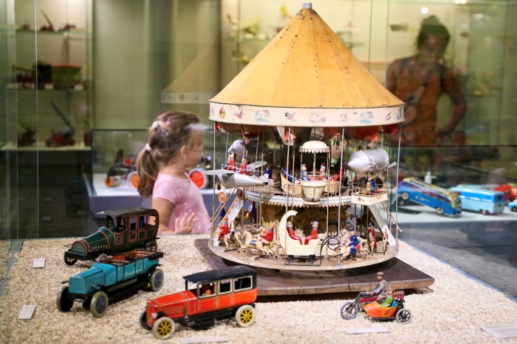 另外也有大量紐倫堡赫赫有名的錫製金屬玩具,例如人偶、交通工具,展示櫃中的雙層旋轉木馬是真的可以轉動並發出音樂的唷!令人看得目不轉睛。