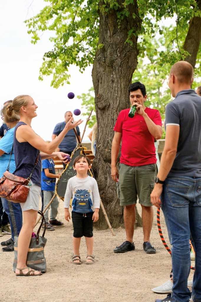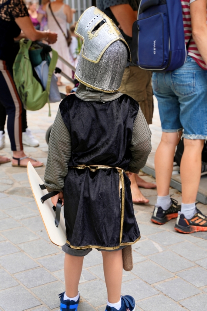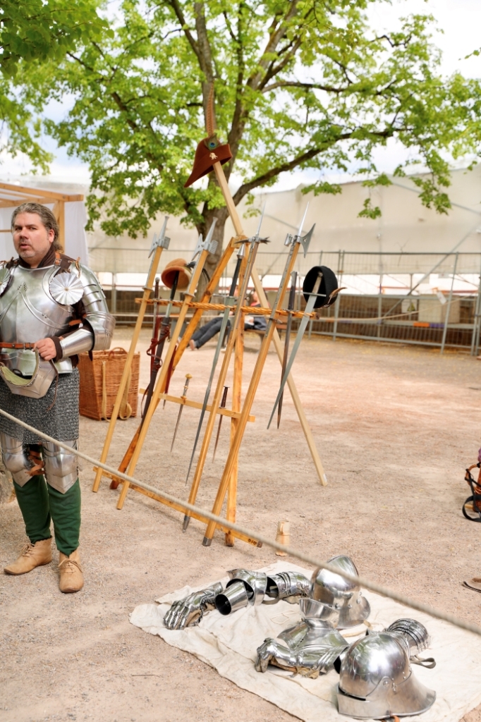 我們幸運地在博物館櫃檯看到一張傳單,發現當天正好是「紐倫堡城堡」(Nürnberger Burg)開放日,不僅能夠免費參觀,也有各種好玩的活動,像是中世紀的盔甲展示、十字弓射擊挑戰、詩集朗讀會,還有專為親子準備的童玩體驗,如拋三顆球、扯鈴、踩高蹺、轉盤子。