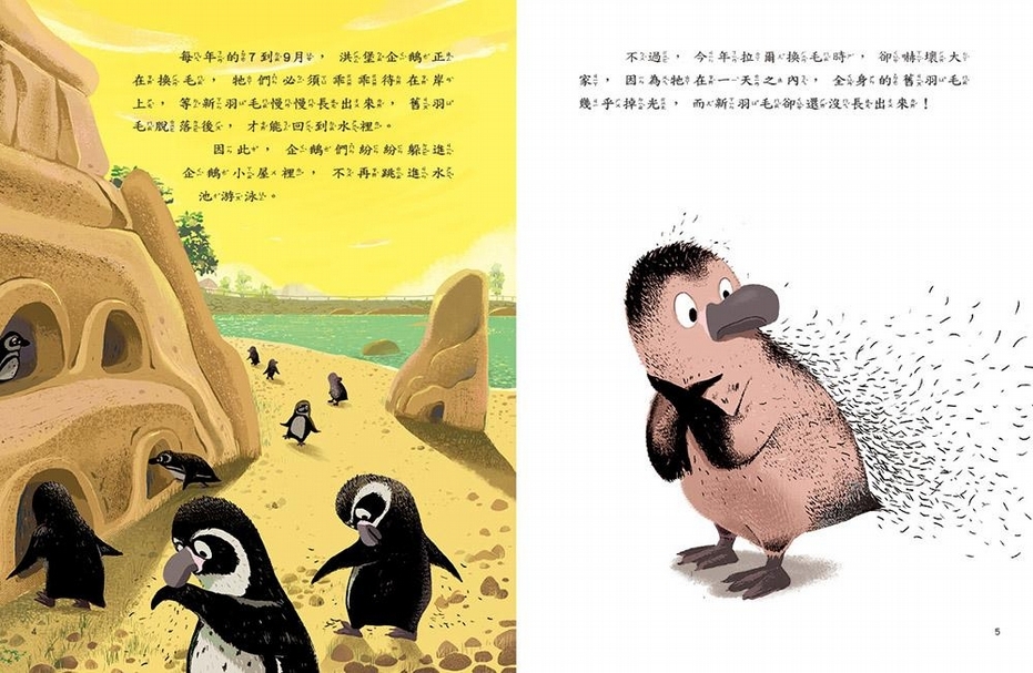 內容簡介:企鵝拉爾居住在英國的馬維爾動物園, 某一天,他的羽毛全部掉光! 因為怕晒傷,他無法自在的游泳, 因為長得和其他企鵝不一樣,他交不到朋友, 動物保育員想了又想,試過一個又一個的方法, 直到幫他做了一件泳衣後……發生了神奇的事情! 一起來認識企鵝,探索海洋,尊重生命的可貴!(圖片來源:誠品網路書店│康軒文教事業《為你做一件泳衣 》)