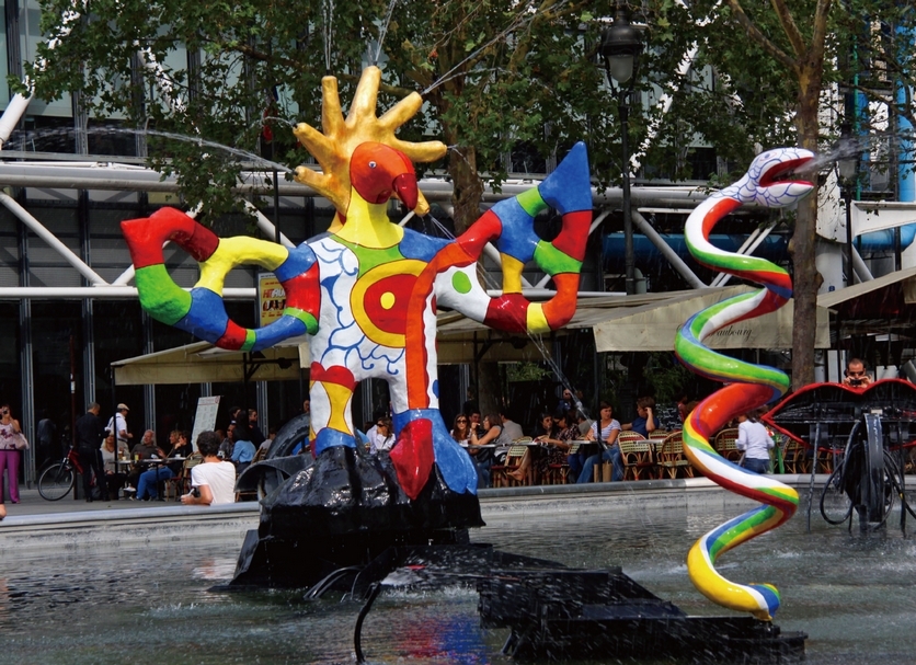 《史特拉文斯基噴泉》以俄國作曲家史特拉文斯基的《火鳥三部曲》、《春之祭》 為靈感泉源:把一串串的音符化為雕塑,成為小朋友們的最愛。 丁格利│《史特拉文斯基噴泉》│機械裝置│法國龐畢度中心。©Guillaume Baviere