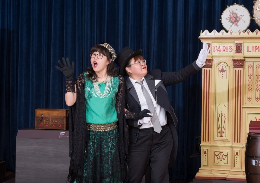 「自動樂器小劇場」是奇美博物館去年首度推出的戲劇型導覽,打破傳統的講解方式,透過劇情故事引導民眾記憶展品且吸收知識。今年劇場升級優化,以「分眾化」為目標,推出兩種演出版本─劇情版和說書版 。
