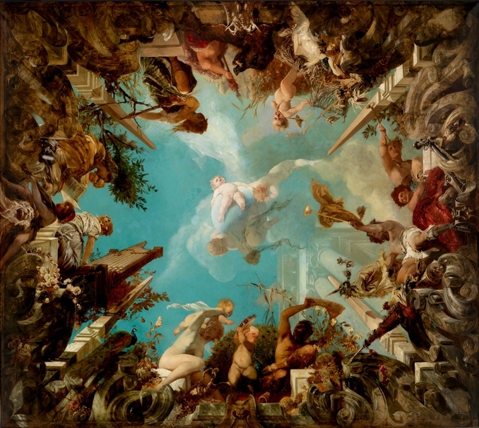 〈音樂的寓意〉是奇美博物館尺寸最大的畫作(5 x 4.5公尺),亦是必看展品。創作它的畫家翰思.馬卡為風靡19世紀的奧地利藝術家,當時富商尼可拉斯.頓巴委託馬卡為自己的圖書室設計一系列畫作,其中的天井畫就是〈音樂的寓意〉。該作擁有豐富的圖象意涵,但際遇曲折坎坷,歷經二戰洗禮與希特勒的覬覦,因此也擁有非凡的時代意義。