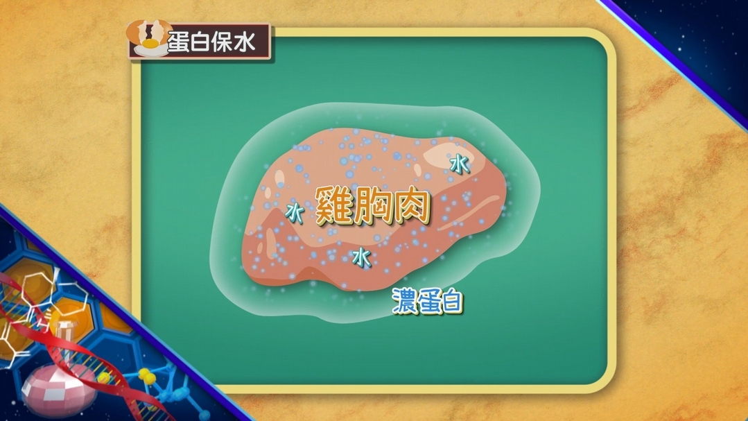 雞肉也要先處理過,先切成小塊的雞丁,再打一下水,「打水」通常比較會出現在絞肉或是雞丁類的處理上,肉切小塊一點,在打水的時候,也比較容易把水吃進去。還沒打水的時候肉是鮮紅的,打完水之後呈現有一點白色,顯示蛋白質已經釋放出來,所以肉質會慢慢變得比較軟細。吃好水之後要讓雞肉能夠保水,就要靠蛋白了,再加進一點太白粉,攪拌均勻包覆雞丁裡面的湯汁。