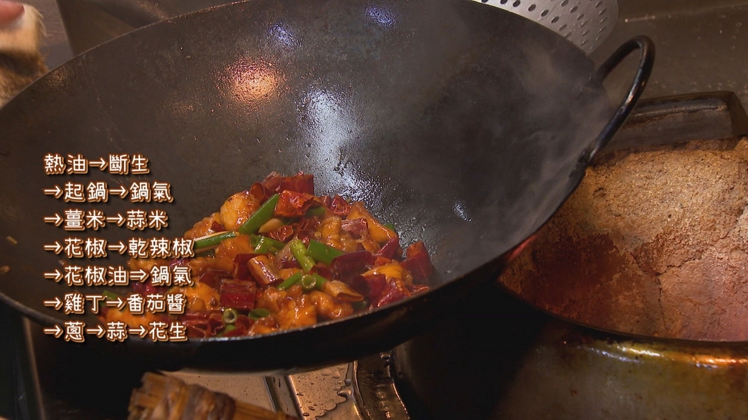 到底「宮保雞丁」是怎麼做出來的呢?首先要把香料準備好,重點是把花椒的香氣煸出來,煉油是最先要處理的程序,通常煉油時油溫不會超過80度,能夠萃取最多的花椒香,這個油可是宮保雞丁這道料理的靈魂呢!