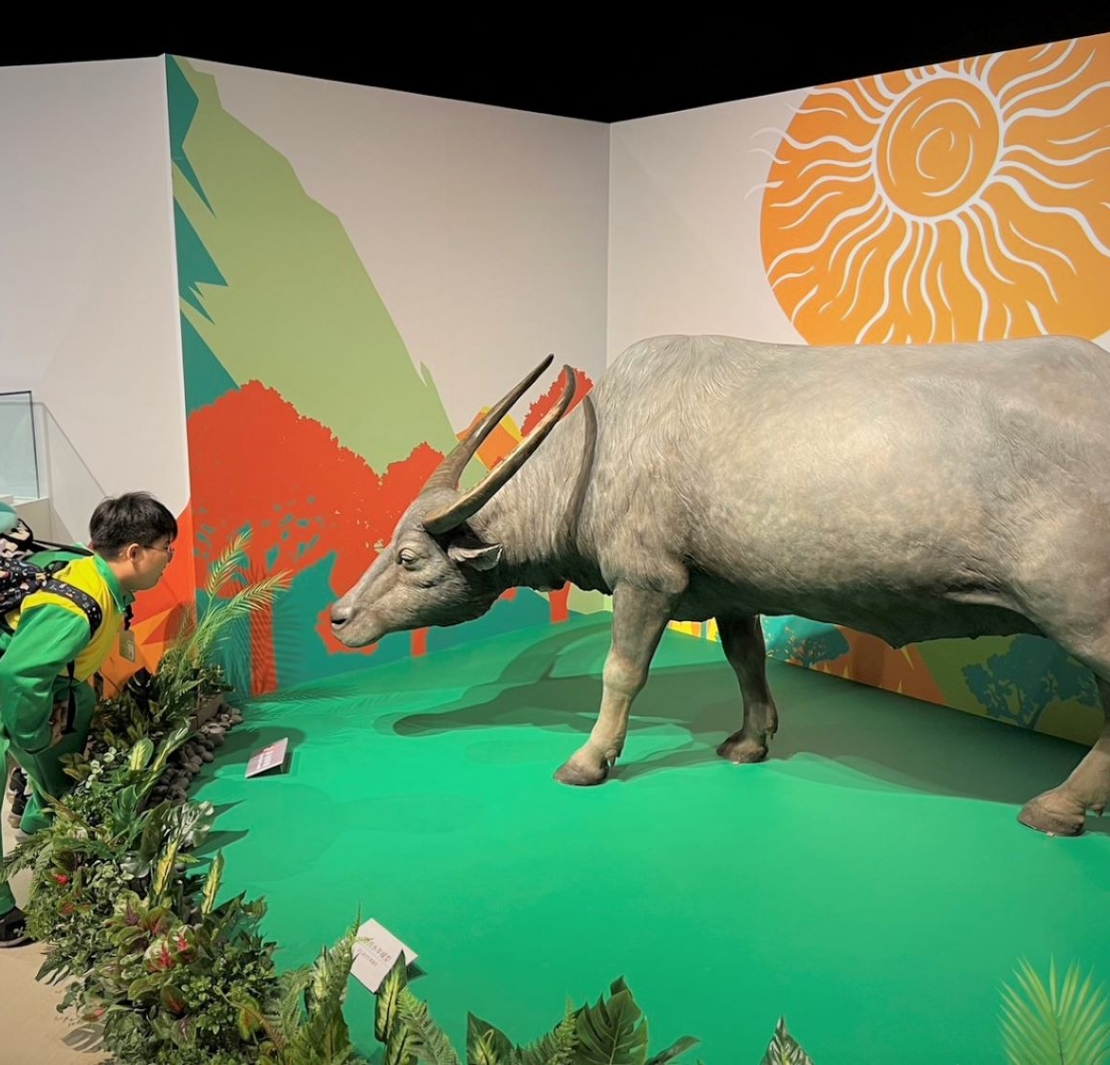 長達近3公尺的大型德氏水牛模型十分吸睛 圖|新北市立十三行博物館