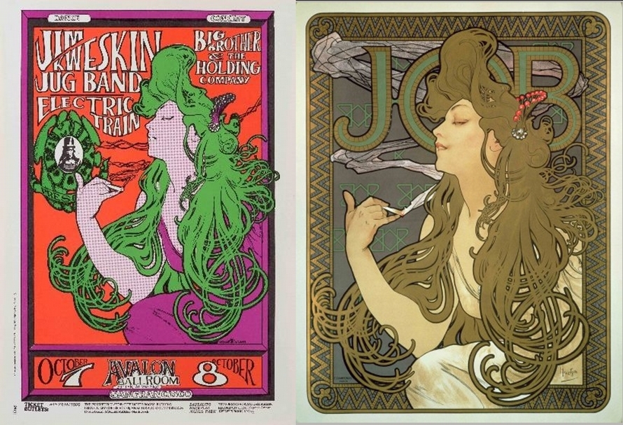 美國吉姆·基威斯金水罐樂隊(Jug Band)音樂海報便是致敬慕夏的香菸宣傳海報《若普(JOB)》/圖 慕夏基金會ⒸMucha Trust 2020