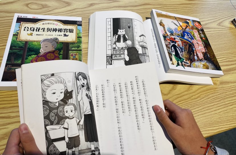 我很羨慕媽媽小時候有柑仔店可以逛,聽媽媽說小時候的柑仔店賣的那些糖果和抽籤遊戲,對我來說都是神奇無比的事物,所以我讀廣嶋玲子的《神奇柑仔店》時,總會覺得錢天堂裡那些有著神秘魔法的零食和玩具,說不定真的存在媽媽小時候的某個街角小店,老闆娘紅子和黑貓墨丸正在裡頭等著你光臨,等著你告訴他們心裡的煩惱和想達成的願望,喜歡柑仔店系列的朋友們也要逛逛我好喜歡的《魔法十年屋》,它可以幫你保管重要的東西和回憶,還有可愛的橘貓客來喜,他會做好多美味的點心招待客人享用,看得我口水直流!