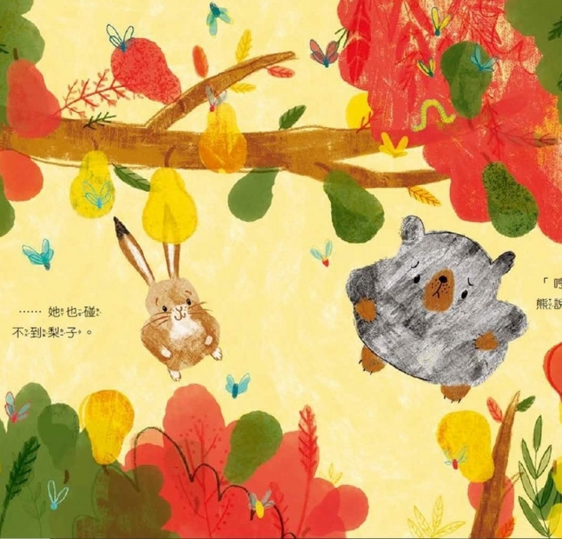 《這樣公平嗎?》(圖片1)是一本「可口多汁」,很適合在豐收的秋日閱讀的一本書。尤其封面、前蝴蝶頁、書名頁,那一顆顆橙黃、橘紅、蘋果綠色的西洋梨,垂涎欲滴,立刻吸引我的目光!而看到書名中「公平」這兩個字,耳邊不自覺竄進許多「媽媽不公平!…」的話語,努力排解紛爭後,讓自己滿頭大汗灰頭土臉的記憶在腦海迴盪著;學校老師們更需要在面對排山倒海的「老師,不公平!」中,想盡辦法平息學生們滿腹牢騷與抱怨。然而,在生活中不只是孩子,在大人的世界裡也存在許多的不公平,這似乎是人生一路以來難解的習題,不禁對於封面如此秋意與溫馨的繪本,充滿著好奇(圖片2)。
