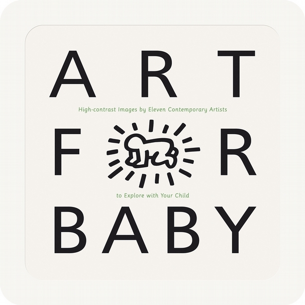 「據說」嬰兒剛出生四、五個月內,視力還發育不全,看不到色彩,對「對比強烈」、「黑白」的圖較有興趣,因此,給嬰兒看這樣的圖可刺激他們的視力發育、腦部視覺區域發展——在這樣的理論研究背景下,有一位編輯以策展人的觀點,找了十二位當代藝術家各一張黑白的作品,做了這本硬頁書 ─Art for baby。