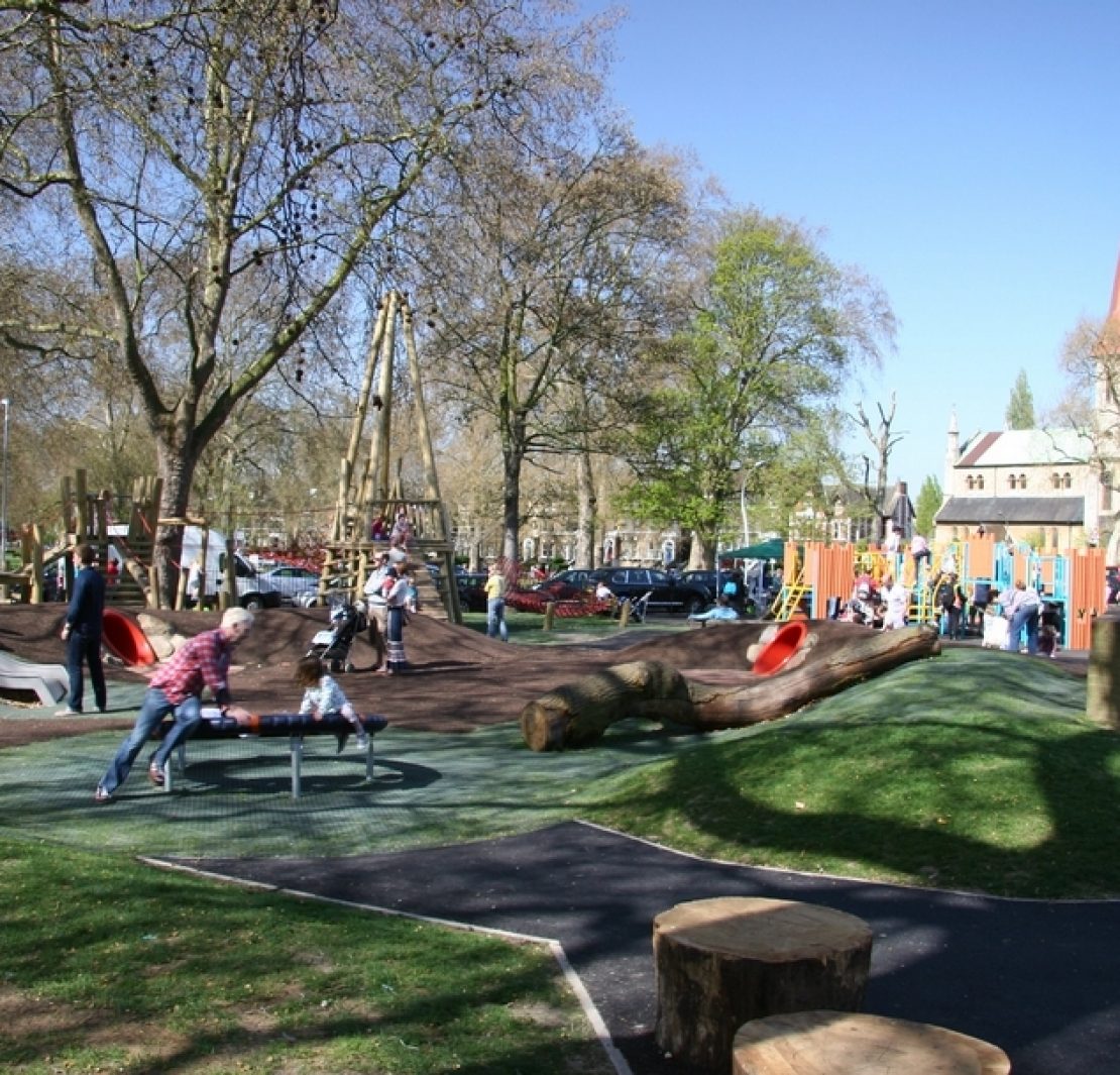 結合攀爬、滑行、擺盪、旋轉、籃框及地景,具有高度的可玩性(Goose Green Playground) (照片來源:flikr– Paul – (CC BY-NC-SA 2.0))