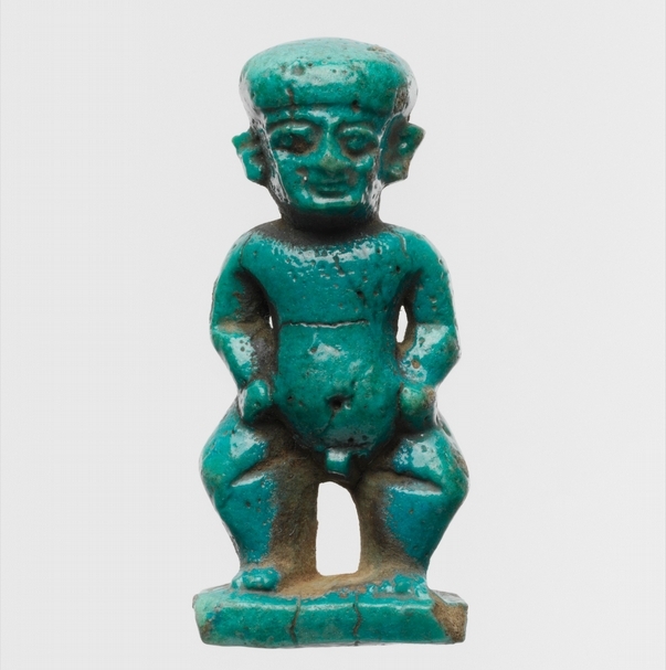 首先登場的是這位渾身青藍色的神——帕塔科(Pataikos),這個名字有矮人的含義,實際上祂真的十分小巧僅有5.8公分高,比手掌還小。但是可別低估帕塔科,祂已經超過2900歲!來自古埃及文明的帕塔科是人們眼中能抵禦危險動物的守護神,祂還擁有神奇醫術可以治癒蛇與蠍的毒液,是生活中不可或缺的存在。因此為了讓自己今生及來世都能受到帕塔科的保護,人們將祂製成可隨身配戴的護身符,免於遭遇災禍或者逢凶化吉。