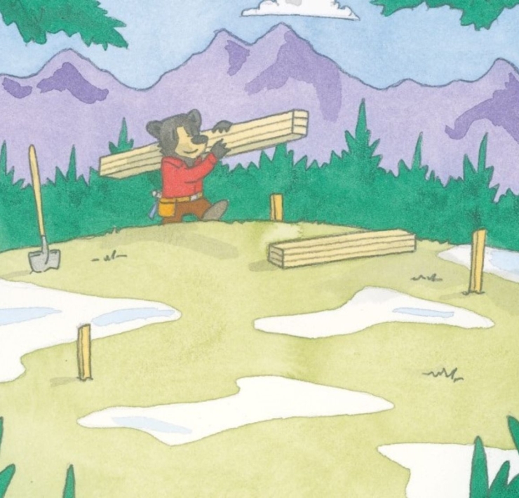 不只是文字有韻律感,畫面也有節奏感,從書名頁準備開麥拉,到三個角色的序幕拉開,中間的頁面都有節奏的存在。繪者細膩的作畫方式,讓畫面可以有很多仔細閱讀的趣味,像是封面剪影、牆壁上的照片、奬牌、地上凌亂的花朵、……,三個角色的自白頁,也特地加上了主觀的意味,並在背景色上著墨心思,來強化了故事想傳遞的人性特點與性格。還有,可愛的香菇鳥也是整本書不能錯過的,「找一找」可是孩子們欣賞圖像時最厲害的本事呢!那到底這本書的黑白線條需不需要上色呢?我們決定留給孩子更多的想像!
