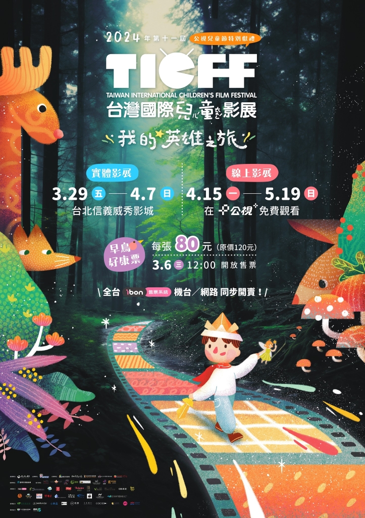 由公共電視主辦,富邦文教基金會協辦的「2024年台灣國際兒童影展」(TICFF)邁入第十一屆,實體影展將於3/29(五)至4/7(日)在台北信義威秀影城盛大開展,歡迎所有大小朋友在今年兒童節連續假期走進戲院,一同參與這場為期十天的電影盛宴!