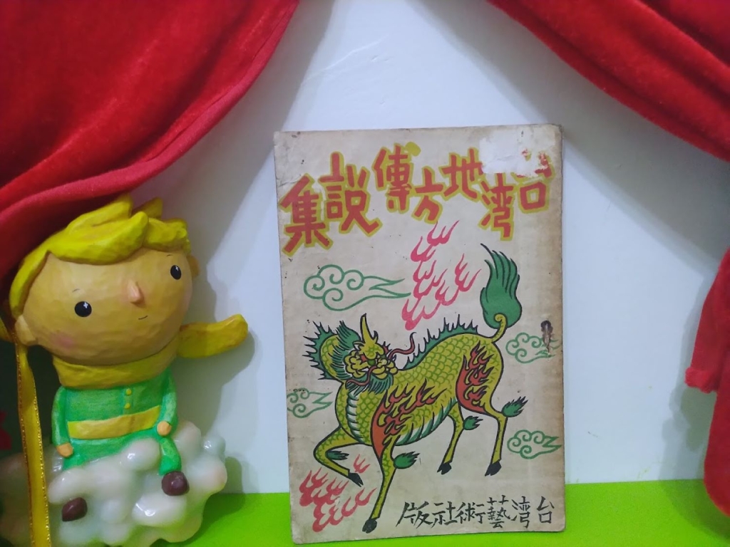 另外要特別介紹的藏書是絕版的古本,每一本都價值非凡,只要被翻讀便依然散發著歷史和思想的光澤。例如1943(昭和18年)由臺灣藝術社出版的《臺灣地方傳說》一書,收錄了黃啟木、大江山瀛濤、江肖梅、川添新輔、郭啟賢、曹永和、福原頑樁等十三人的作品,采集了臺灣士林、劍潭、中壢、新竹、琉球等地的民間傳說故事,是當時日本殖民政府大力推動皇民化政策下,臺灣本土文化還被保留下來的幸運見證。此書封面的神獸麒麟,縱馳在雲火之間來去自如的模樣,古雅平實,設色柔和,當時流行的插圖風格由此可見端倪。