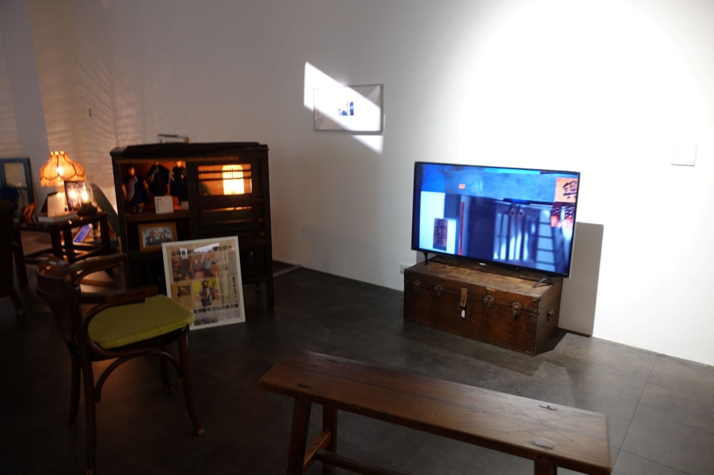策展人表示,展覽內容雙主軸是兩位團長,不過在爬梳展覽過程意外發現,早在2001年就成團過,20幾年後因緣際會又在展覽相遇。因此特別邀請當代藝術家丘智華製作錄像作品,並重建客家老師傅的藍衫店,透過模型、空間邀請觀眾參與,幕後配音是訪談兩位團長,及當時魅戲偶劇團團長湯昇榮口述聲音,帶領觀眾回到20多年前的場景,也是展場內十分溫潤自然的橋接。