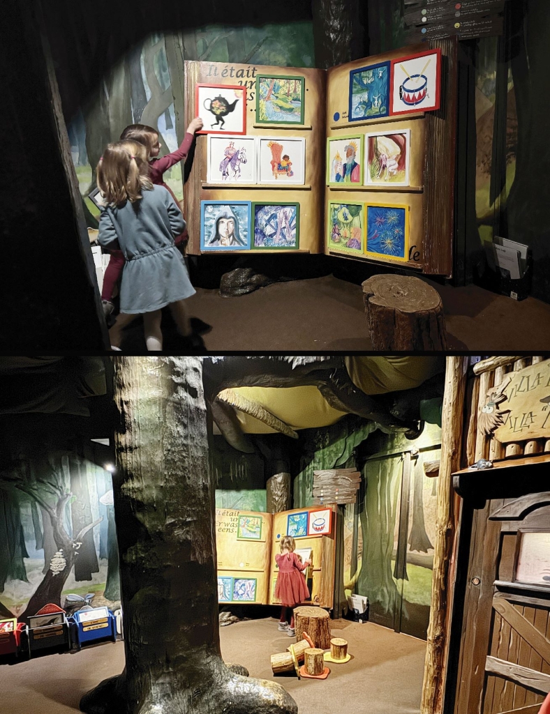 博物館更定期將這些豐富的工作坊與故事內容帶進醫院與學校,透過外展服務與孩子們互動。其中「童話故事工作坊」尤其受到孩子們的熱愛,在我參觀的期間,這個工作坊始終座無虛席;其空間設計巧妙地營造出一種神秘森林的氛圍,中央是一本巨大的故事書,其頁面開始時是空白的。工作坊的主持人會邀請孩子們從「故事情節」的盒子中抽取畫面,共同創作出獨一無二的故事,這不僅鼓勵了孩子們的創造力,也讓他們體驗到「自己」能成為故事的創作者,與大家分享。