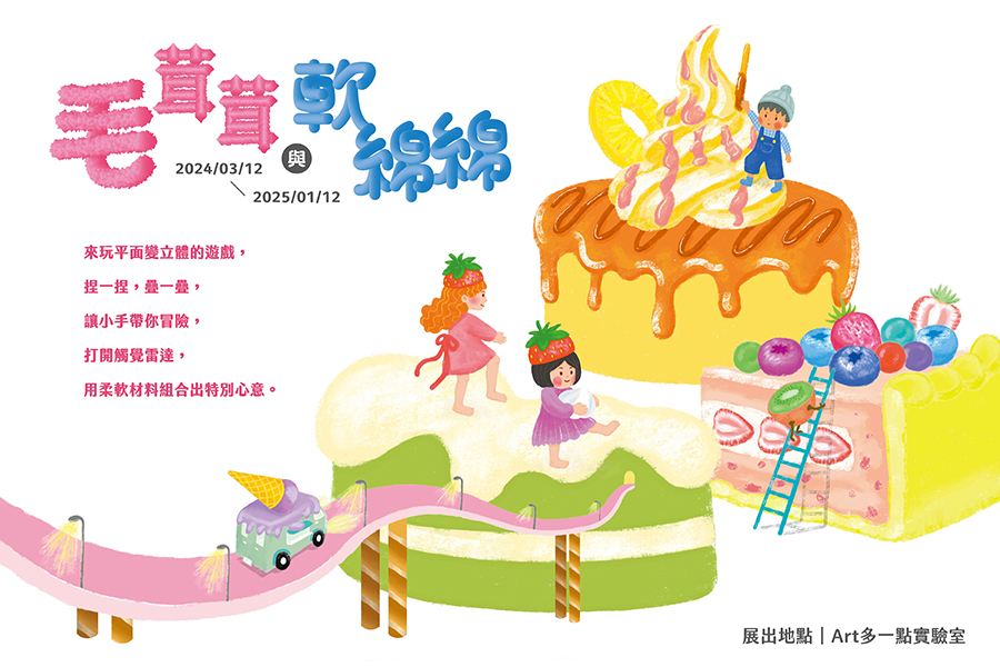 朱銘美術館ART多一點實驗室2024年全新推出【毛茸茸與軟綿綿】用小朋友平常都能接觸到,如外表毛茸茸的填充玩偶,或是摸起來軟滑滑的布料,變身成為堅固的雕塑,有別於目前美術館正在展出的【流形:2024臺灣當代雕塑展】讓大家更加看見雕塑的可能性!
