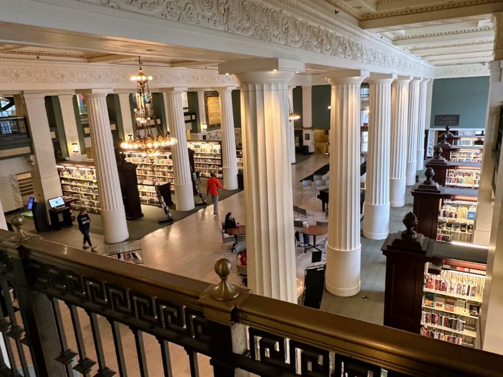 堪薩斯市公共圖書館的總館(Kansas City Public Library Central Library)位於堪薩斯市的市區,它的建築物很特別,是由一棟建於1906年的銀行改建,連旁邊的停車塔都配合圖書館而精心設計。圖書館的大廳有高挑的樑柱與水晶燈,地下室將原本的銀行金庫改裝成電影放映室;頂樓有屋頂花園,除了戶外桌椅,還擺設了巨型的西洋棋盤與棋子,貼心為讀者打造閱讀與休憩的空間。