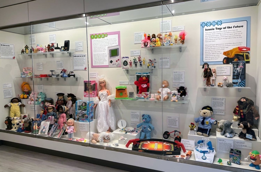 二樓則收集了不同年代的玩具,除了古董玩具之外,還將美國1950 到1990年代的經典玩具,以十年為間距陳列;擺在一起,可以看到兒童玩具演進的歷史,和童年觀念的轉變。此外,不同展間也有不同的主題,例如以「玩具與兒童的關係」來分類展示兒童玩具的類型,或以「玩具工業的轉變」來介紹不同的玩具公司。