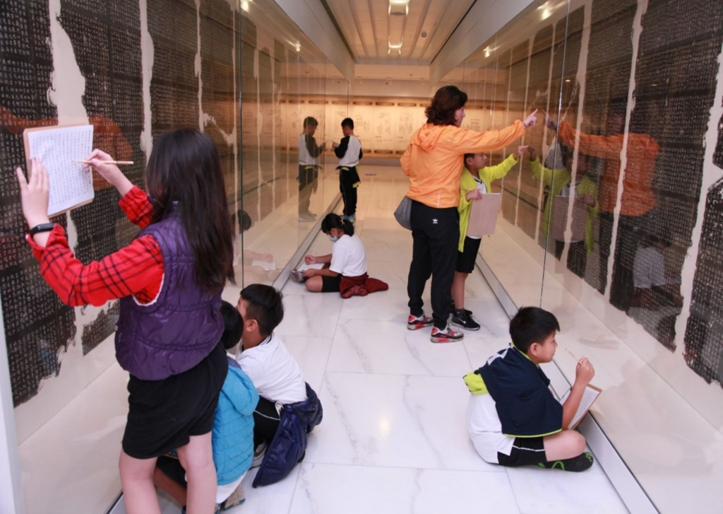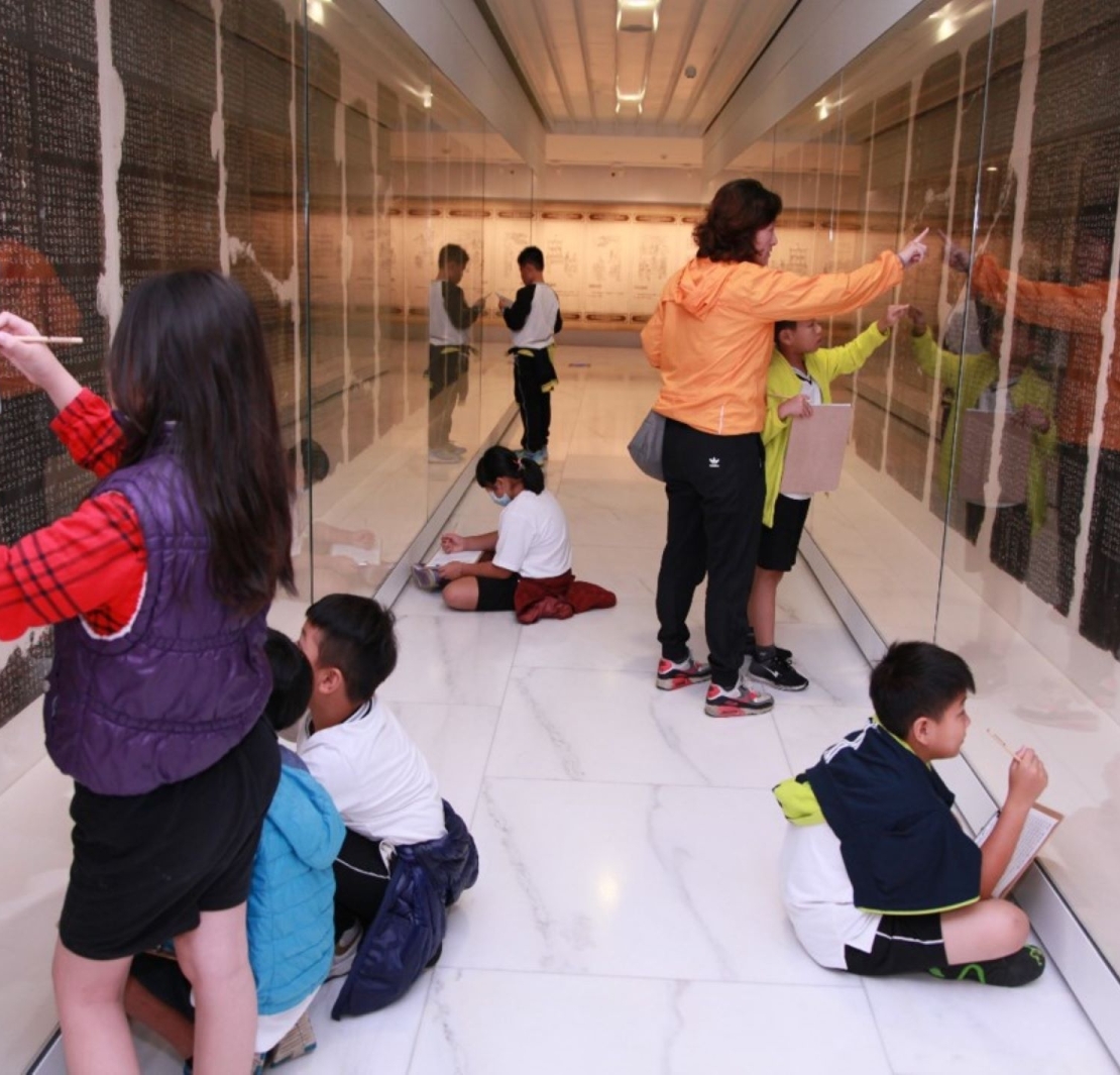 中年級則以碑拓及手作活動,以探索古物來激發孩子觀察力。高年級學生以「書法碑林」為主軸,從認識博物館以及展場導覽,提供學習單闖關互動。