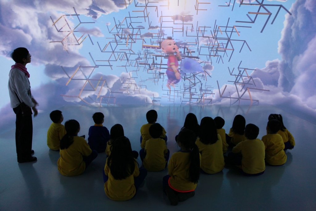 低年級的活動是以佛跟菩薩形象互動導覽跟拼圖遊戲及延伸手作。沉浸式劇場「善財童子劇場」以動畫呈現《善財童子參學記》,深受低年級小朋友喜愛,完會到三樓「金剛實相」展廳尋找本尊。