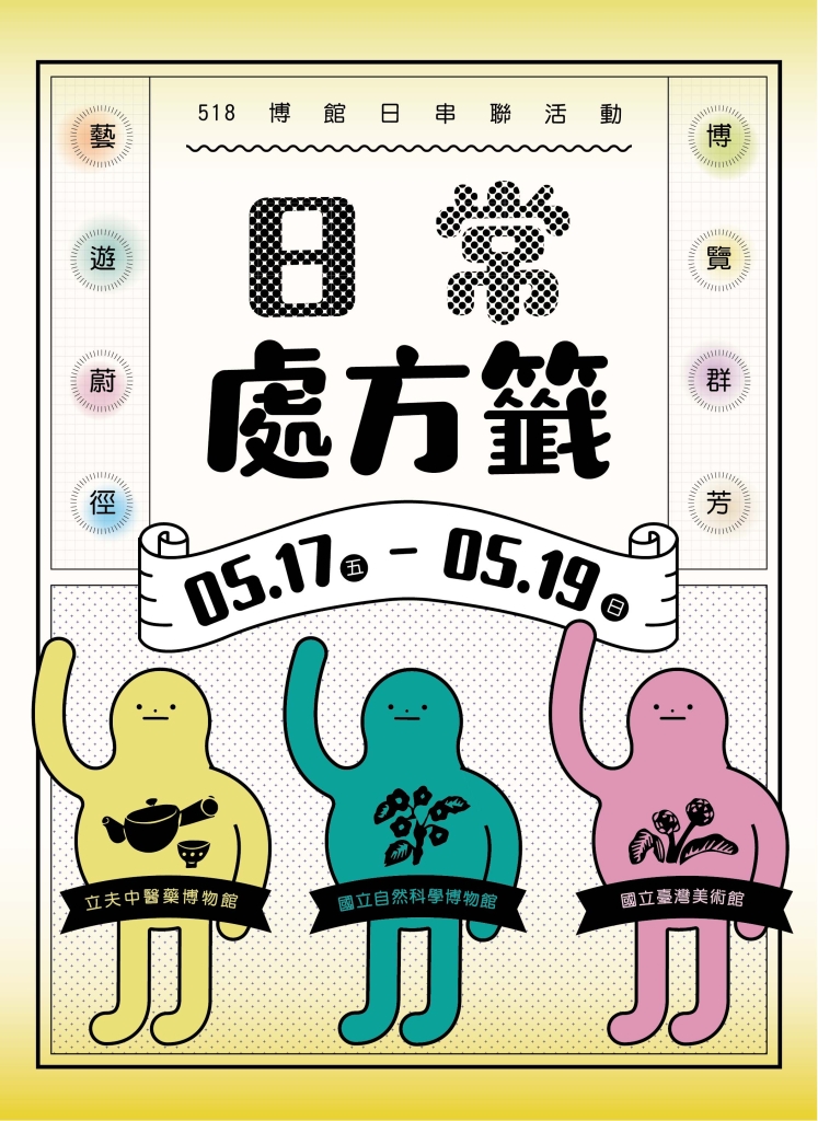 今年度518國際博物日系列活動將以「給日常的舒心處方」為主題,推出包含闖關遊戲、主題導覽及特別活動。5月18日國際博物館日當天將與國立自然科學博物館、中國醫藥大學立夫中醫藥博物館合作,串聯「傳統的中醫藥」、「科學的中醫藥」及「藝術的中醫藥」,推出聯合活動,邀請觀眾透過作品賞析、自我學習及創作引導認識美術館如何將研究運用於教育推廣上。
