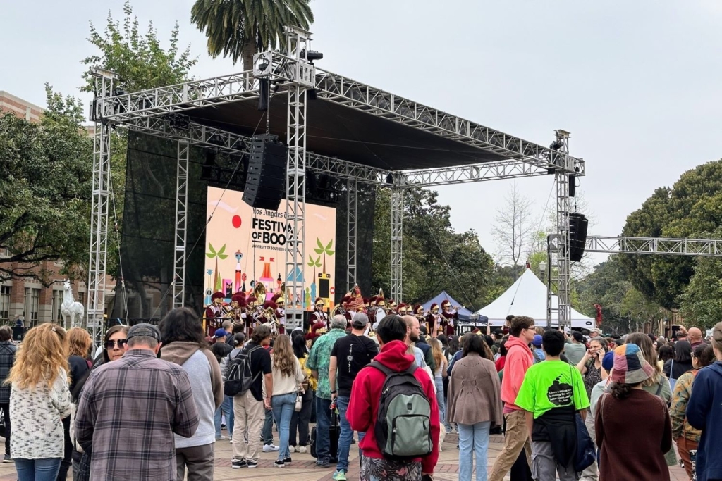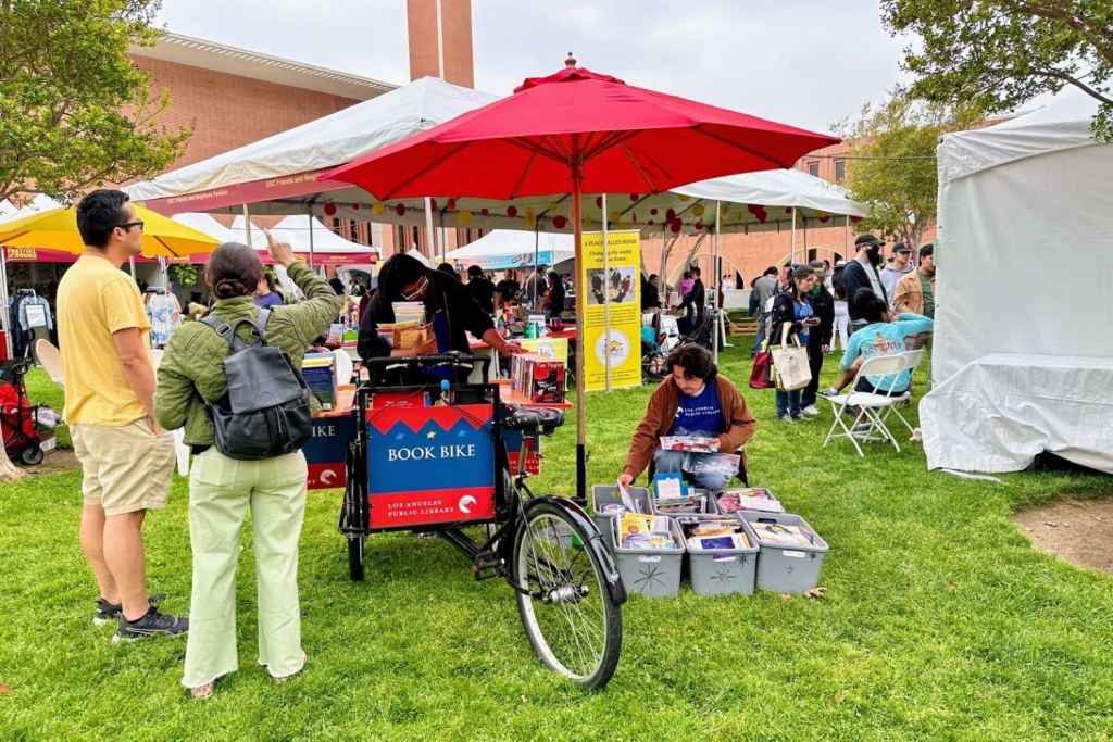 洛杉磯時報圖書節(L.A. Times Book Festival)是美國最大的圖書節,通常在每年四月底的週末進行兩日,地點在南加大(University of South California)的美麗校園。今年的活動有超過350個展覽攤位散佈在校園裡,同時間有六個戶外舞台在進行作家分享、訪談活動,這些活動都是免費參加的。另外還有15個室內演講廳,同時舉辦座談、電影放映會等活動,這些室內演講座位有限,需事先買票才能入場。