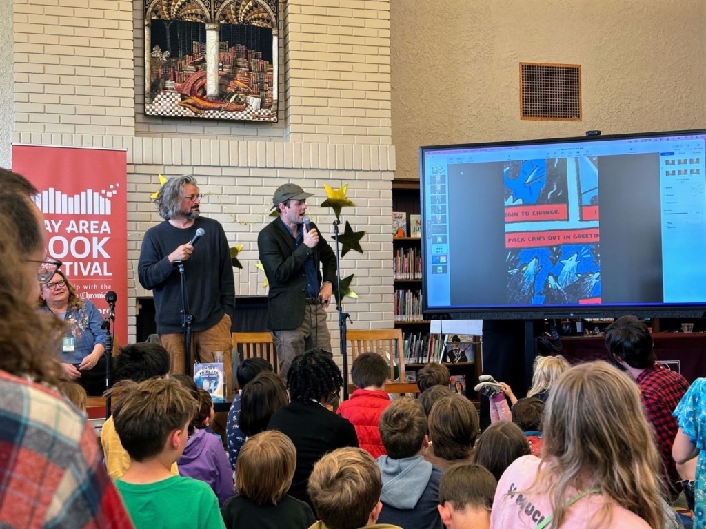 有很多住在灣區的作家們來分享,包括孩子們很喜歡的 Mac Barnett 和 Shawn Harris 這對童年玩伴搭檔,還有知名橋樑書作者Megan McDonald 分享她新的橋樑書系列《Bunny and Clyde》。也有從其他地方特地來參加活動的作家,例如我很喜歡的剪紙藝術家 Nikki McClure 特地從西雅圖來參加圖書節,宣傳她插畫的新書《Something About the Sky》。