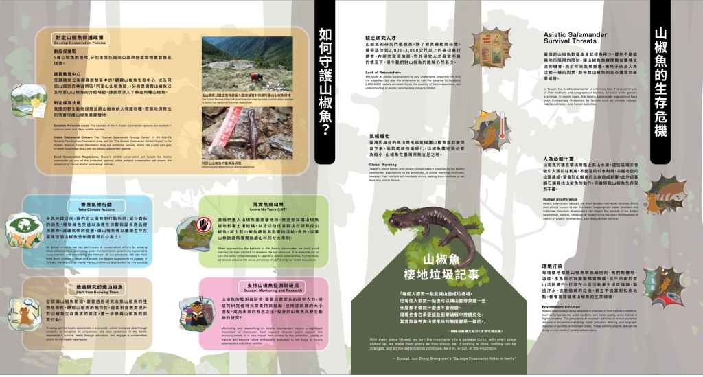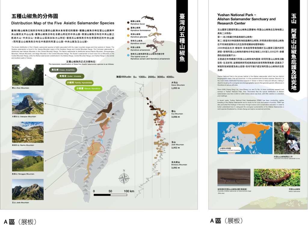 玉管處為提供更多國人了解山椒魚保育,今(113)年初參與臺北市立動物園與內政部國家公園署、農業部林業及自然保育署等單位合作之「走進高山島嶼-探索山椒魚」特展。