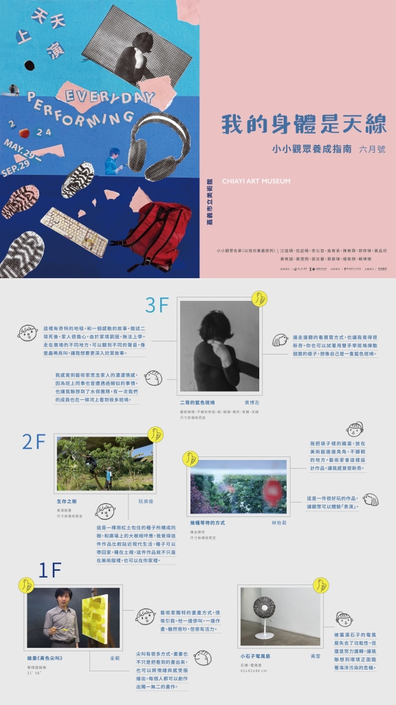 暑假來嘉義市立美術館看展時,別忘了在大廳停留一下,參考孩子們的推薦亮點作品,循著他們的角度,也許你也會對作品有不同的感受。