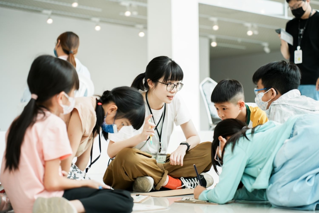 鼓勵兒童表達觀點與想法的「大展身手做展覽」在課程中,循著識讀能力培養的不同階段,從識別展覽、理解展覽、詮釋展覽到創造展覽,搭配著展覽製作流程,循序漸進體驗策展工作。自2020年開始舉辦過6場兒童策展工作坊,逐漸歸納出目標對象:5-7年級的學童較能理解創造展覽的目的性,在認知發展上也較具有邏輯思維、抽象思維及類推能力,從展覽企劃到展示設計的整合能力也較為完整。
